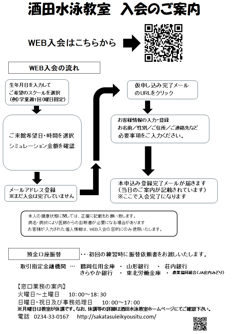 その際、氏名・性別・学年(年齢)・電話番号・ご希望の日時・おおよその泳力をお聞きします。
