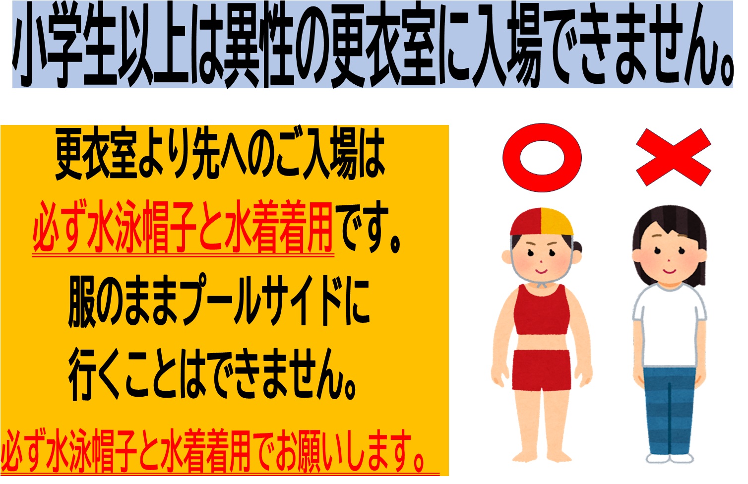 ◆水着、帽子は必ず着用ください。水着以外の服装(Tシャツ等)ではプールに入ることができません。