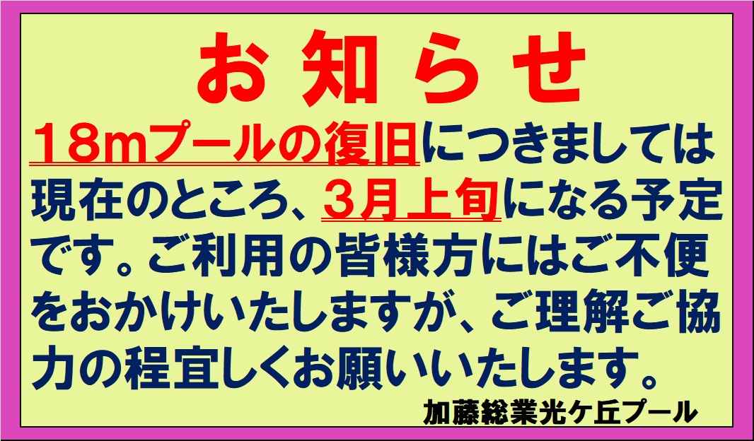 18Mサブプール可動床故障により、使用できない状況になりました。