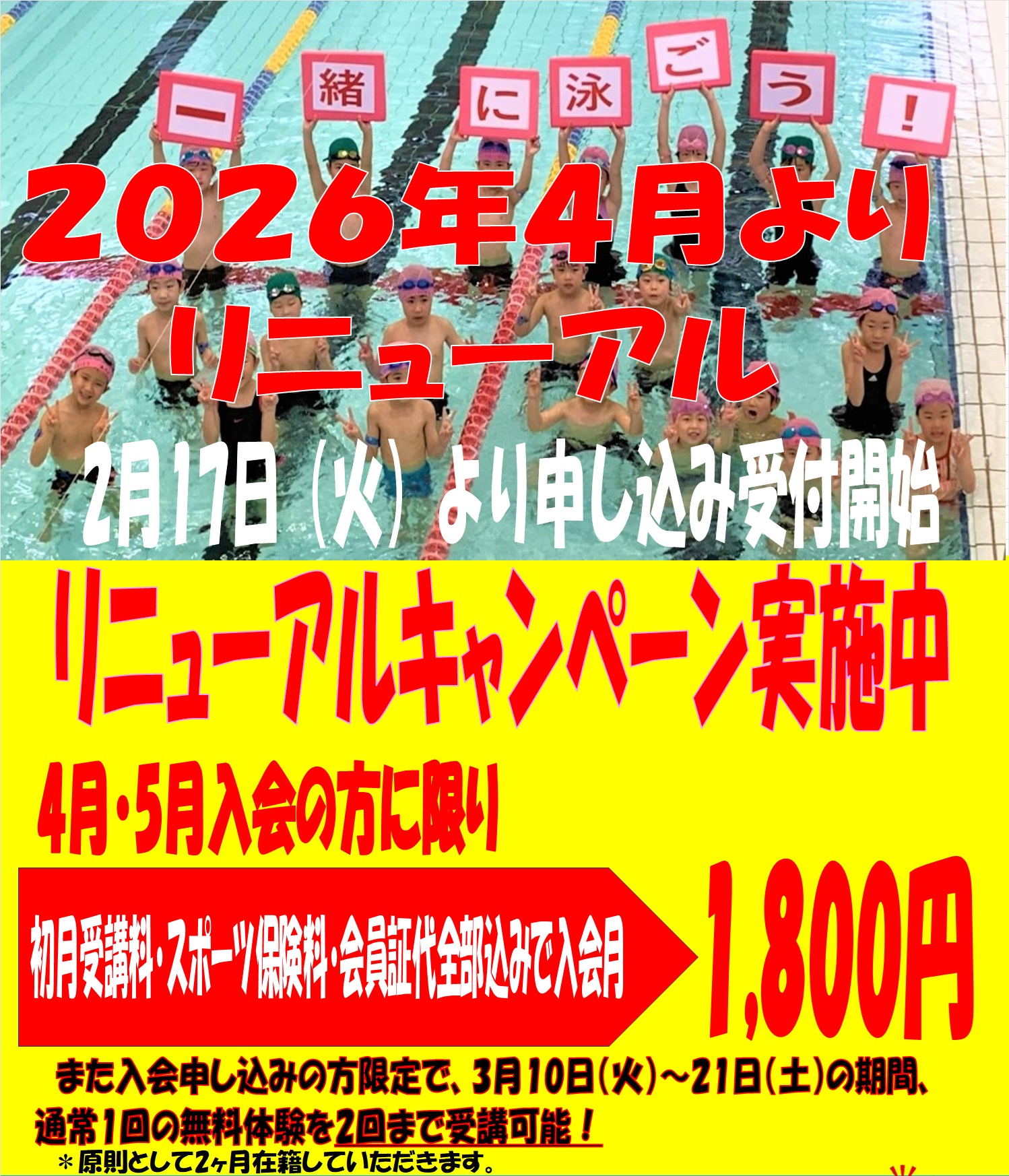 幼児・学童特別水泳教室詳細、お申し込みはこちら←クリック
